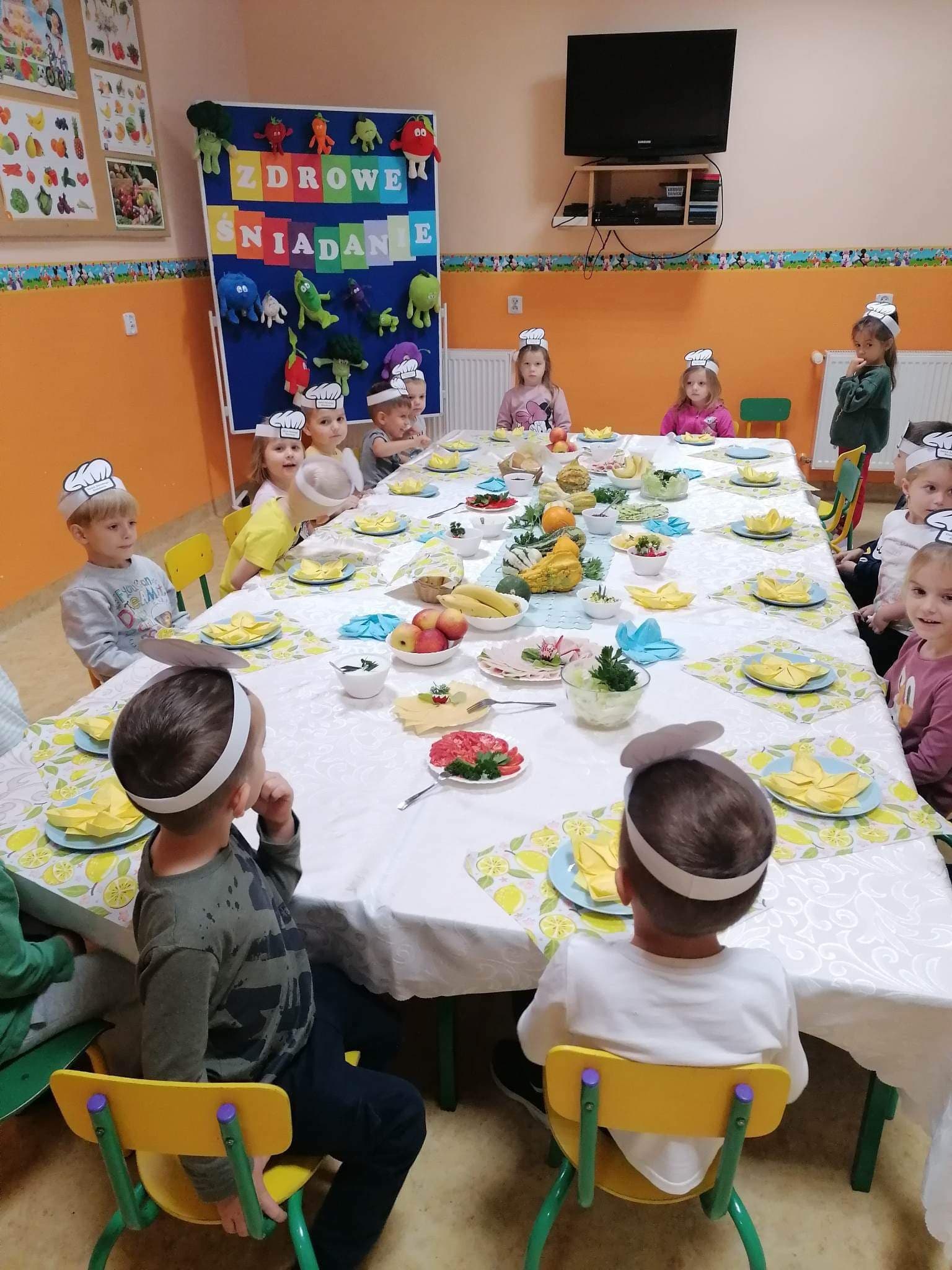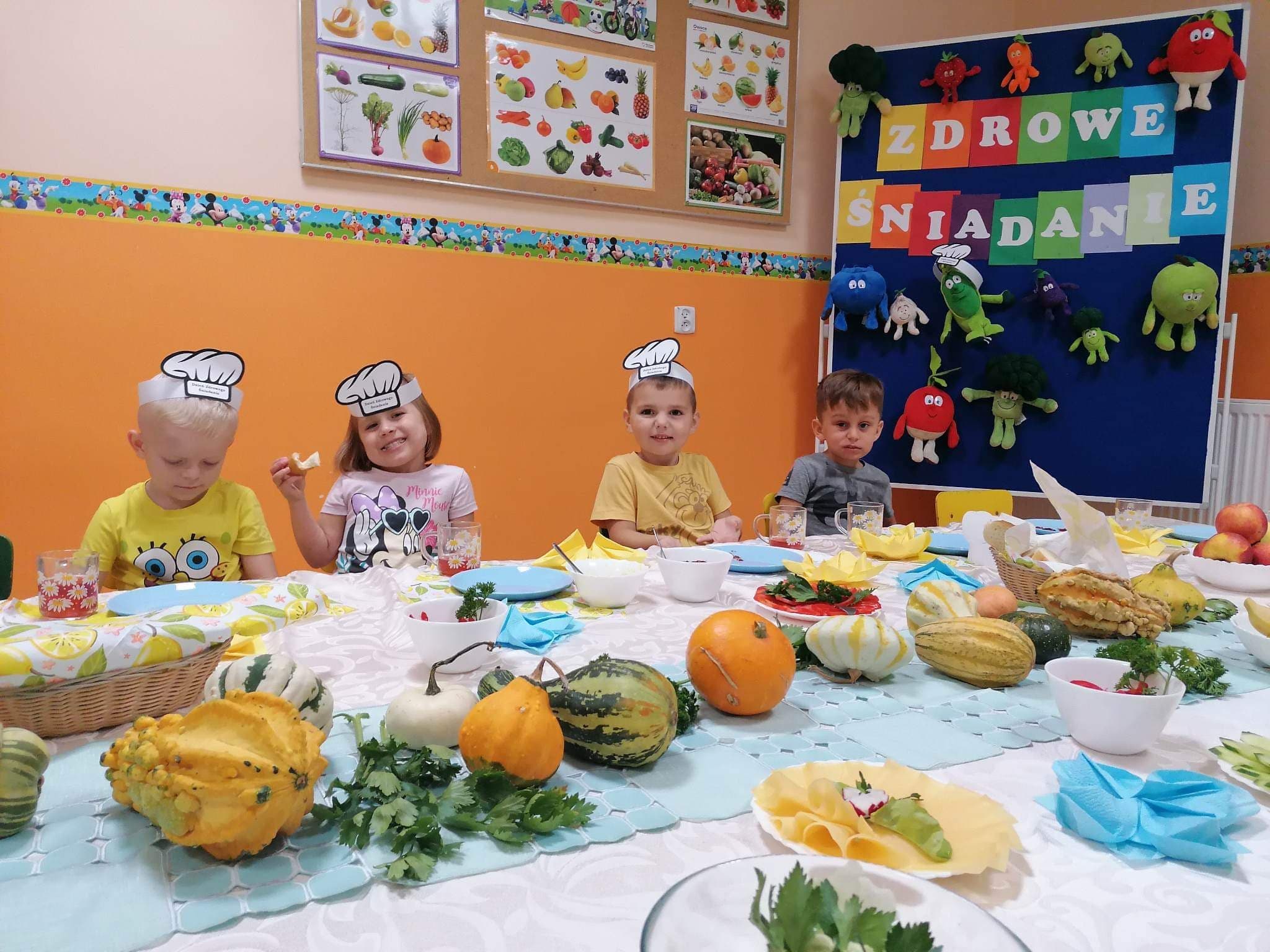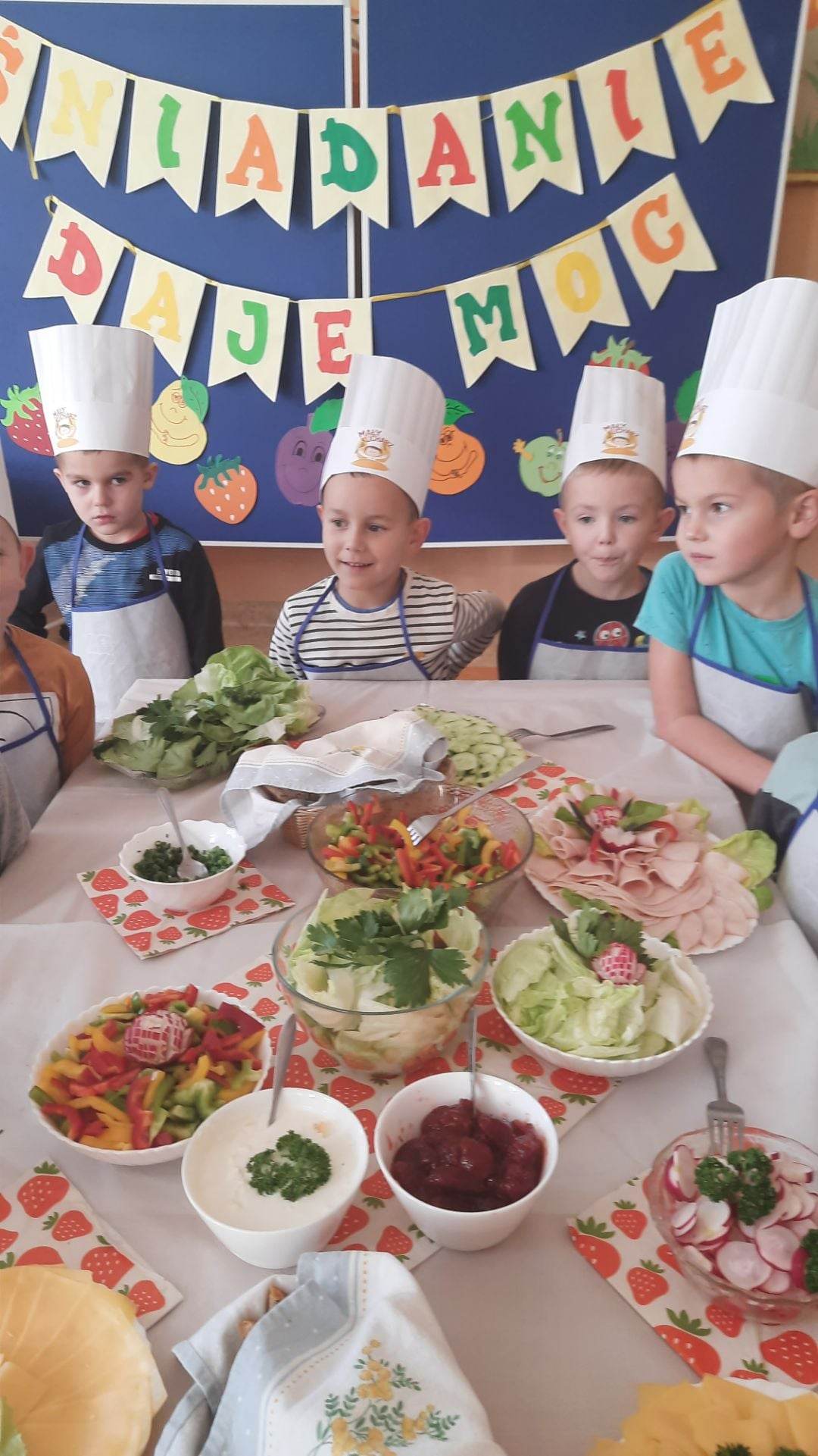 Nasze Przedszkole wzięło aktywny udział w akcji ” 8 listopada Dzień Zdrowego Śniadania” w ramach programu ” Śniadanie daje moc”. Wszystkie przedszkolaki zjedli wspólne śniadanie, na którym nie zabrakło warzyw i owoców, nabiału oraz wędlin, będących źródłem cennych witamin. Ten najważniejszy posiłek dnia dostarczył dzieciom sił do nauki i zabawy.