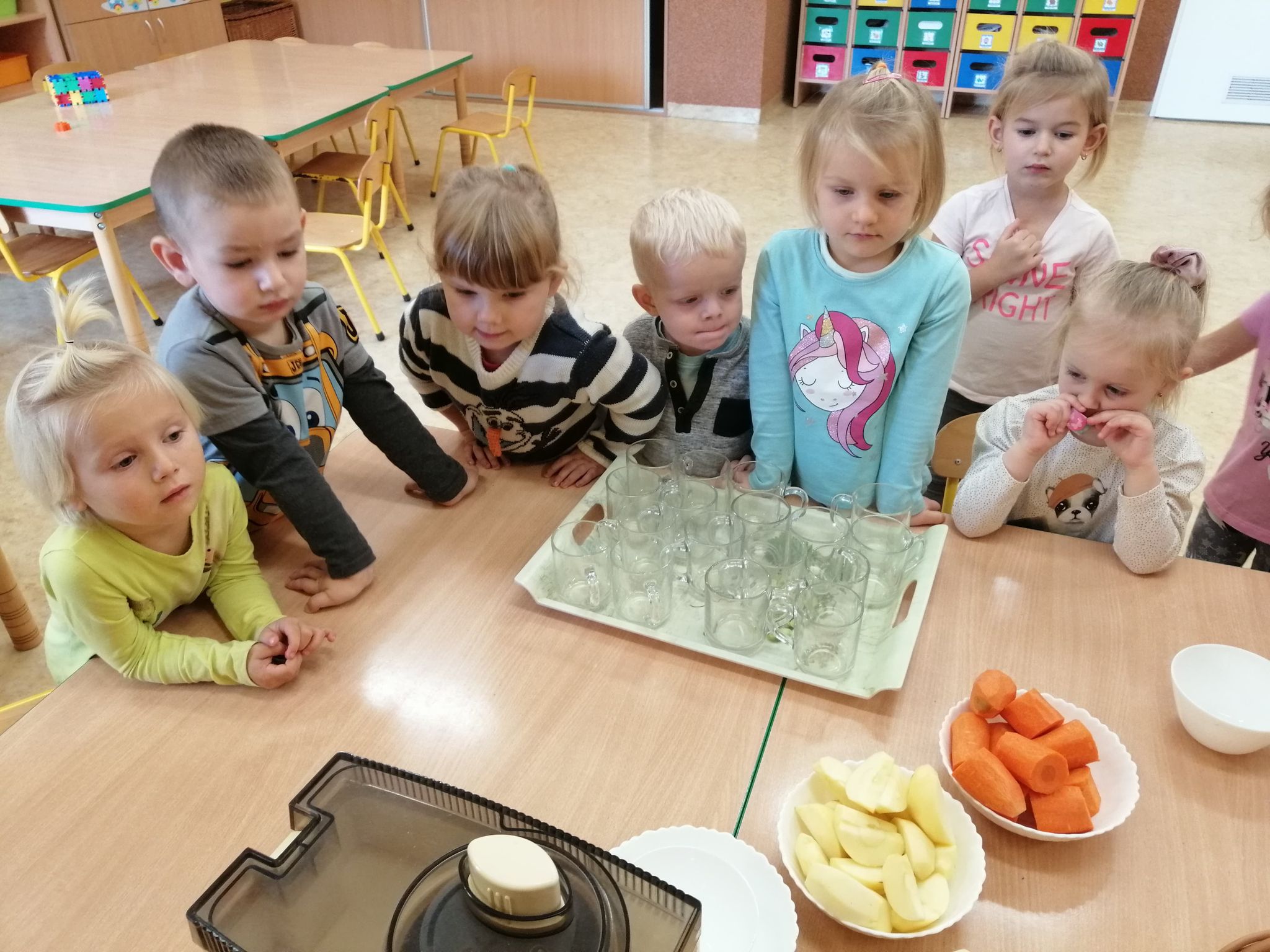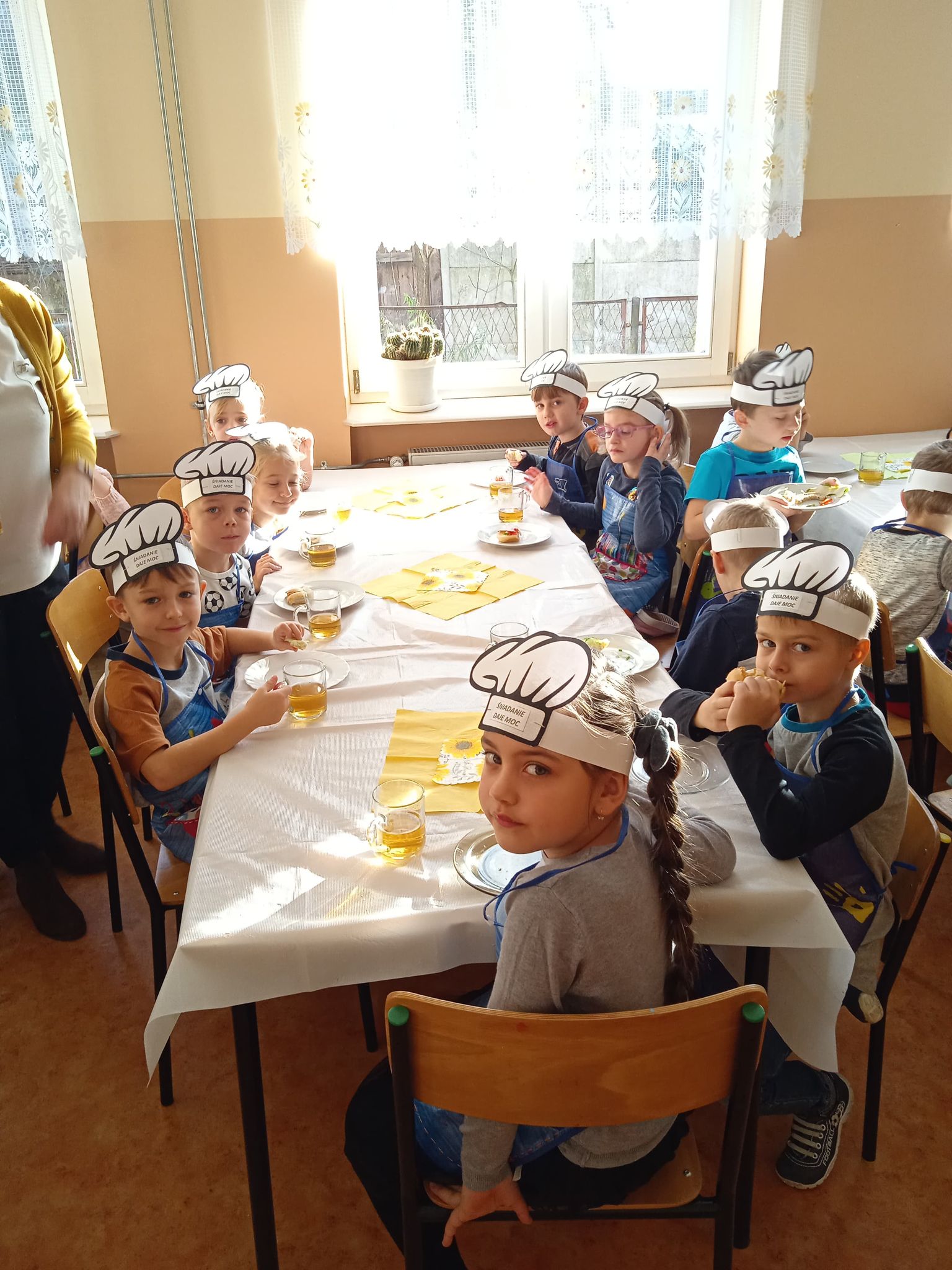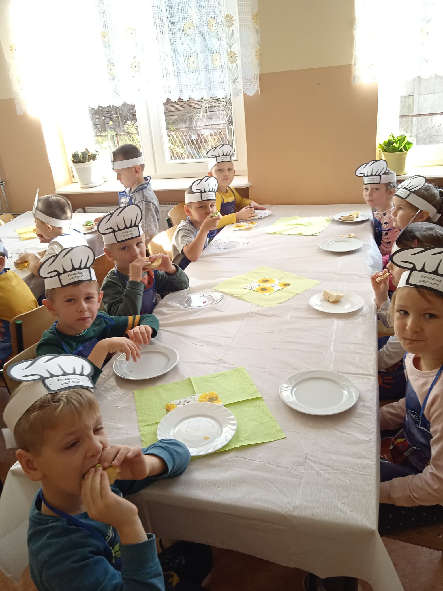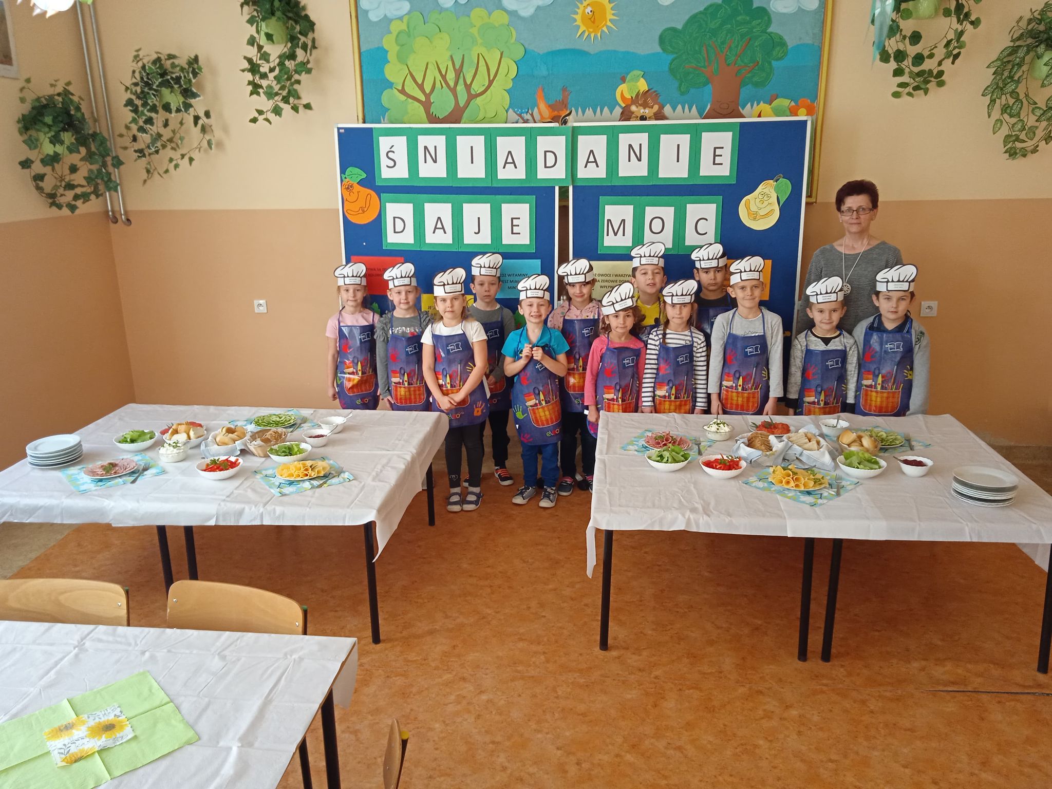 Przedszkolaki z Publicznego Przedszkola w Jeżowem Centrum wiedzą, że warzywa są zdrowe i mają mnóstwo witamin i potrzebnych składników odżywczych. Dlatego tak bardzo chętnie przystąpiły do przygotowania zdrowego śniadania. Dzieci z zapałem układały na swoich kanapkach swoje ulubione produkty: wędlinę, ser, pomidorki, sałatę, ogórki itp. Następnie z wielkim apetytem zjadały swoje kanapeczki,chętnych na dokładki nie brakowało.