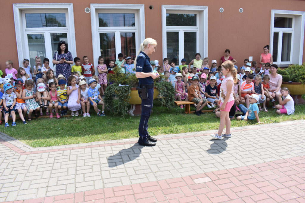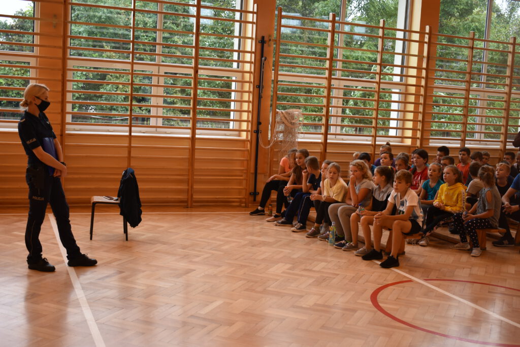 W przedszkolu i klasach 1-3 (17 września) policjantka omówiła zasady poruszania się po ulicy, chodniku i podczas jazdy rowerem. Ponadto podkreśliła, jak ważną rolę pełnią elementy odblaskowe, które każdy uczeń powinien posiadać. Dzieci czynnie uczestniczyły w spotkaniu, dzieliły się swoimi doświadczeniami oraz zadawały mnóstwo pytań.