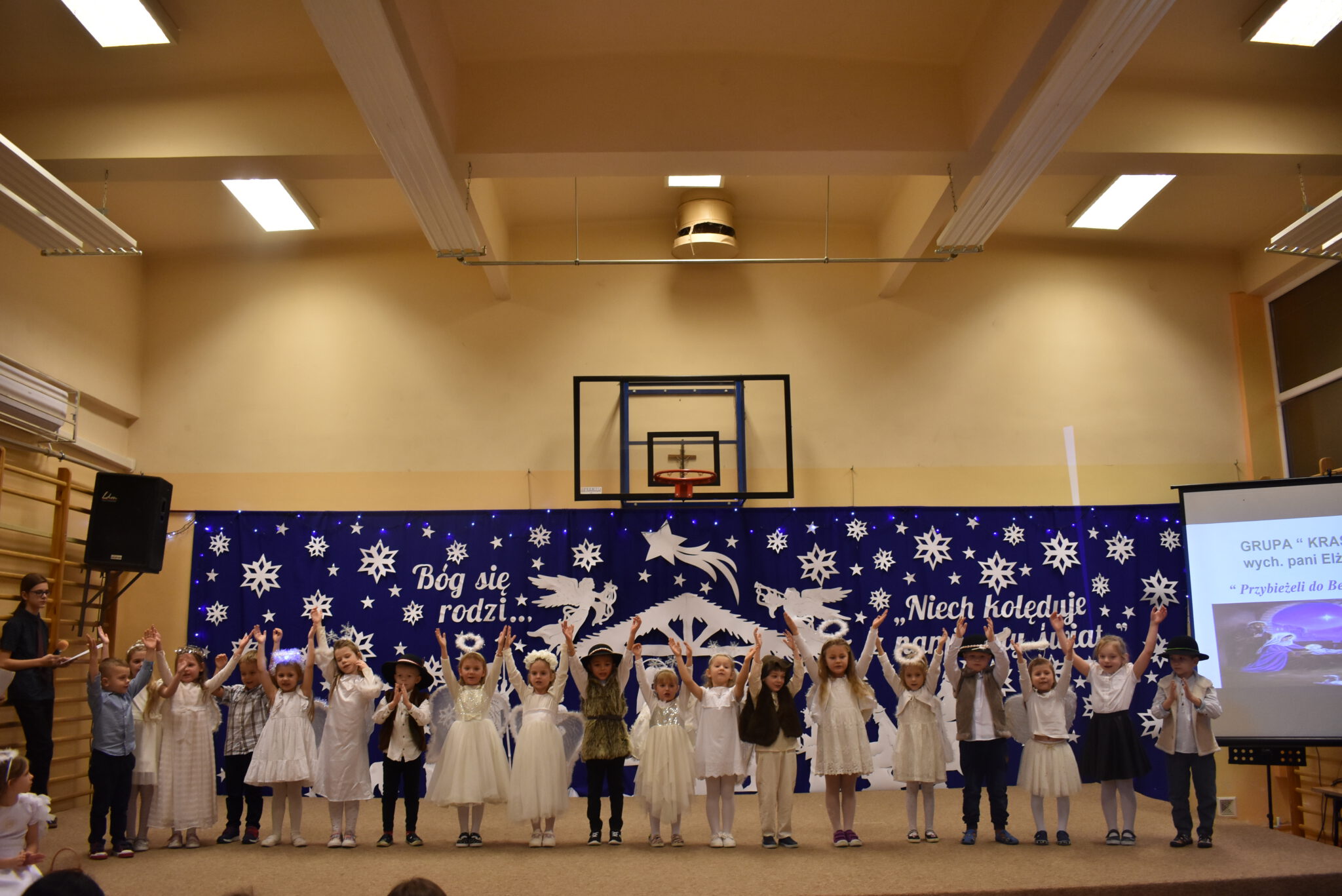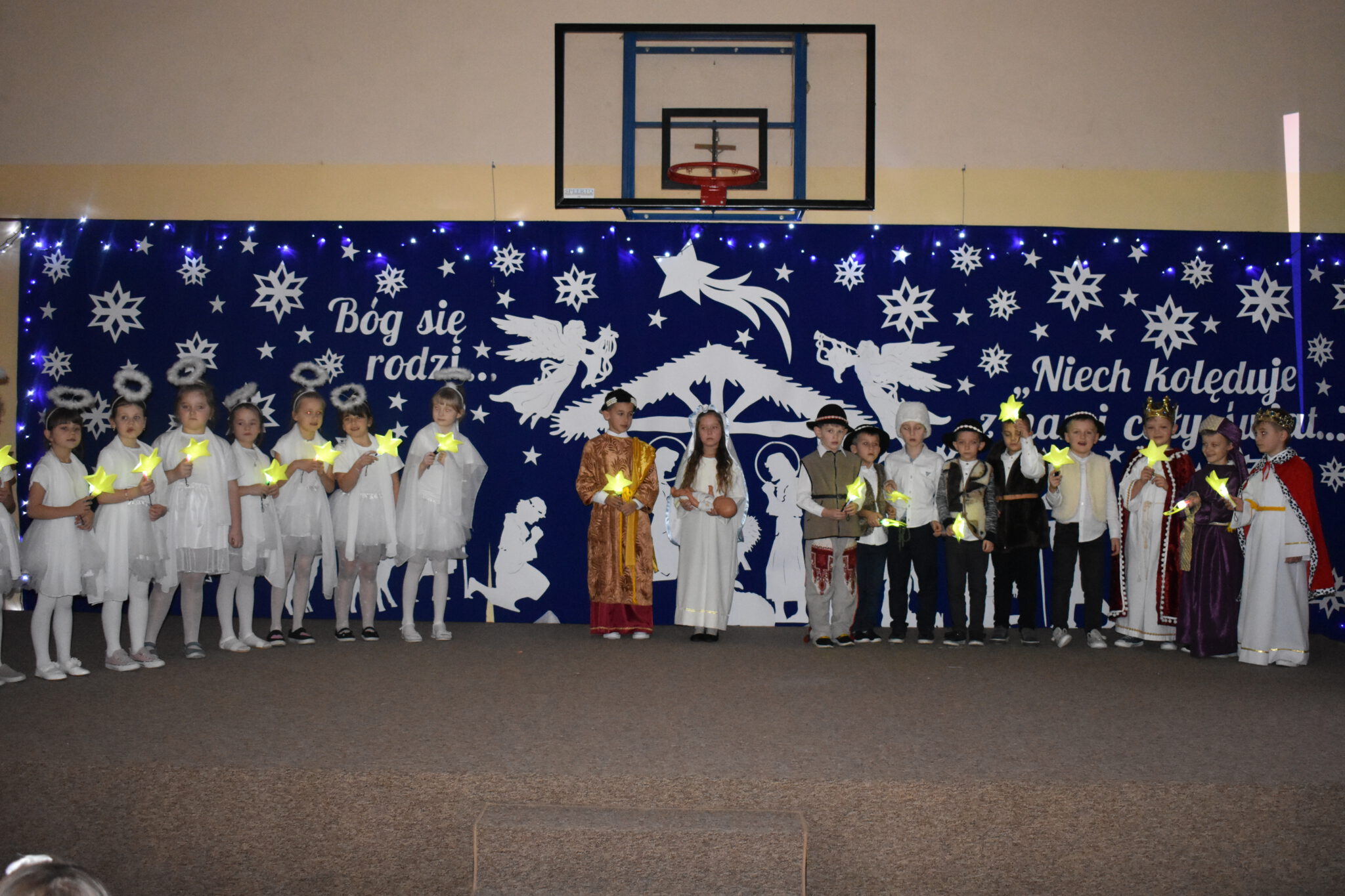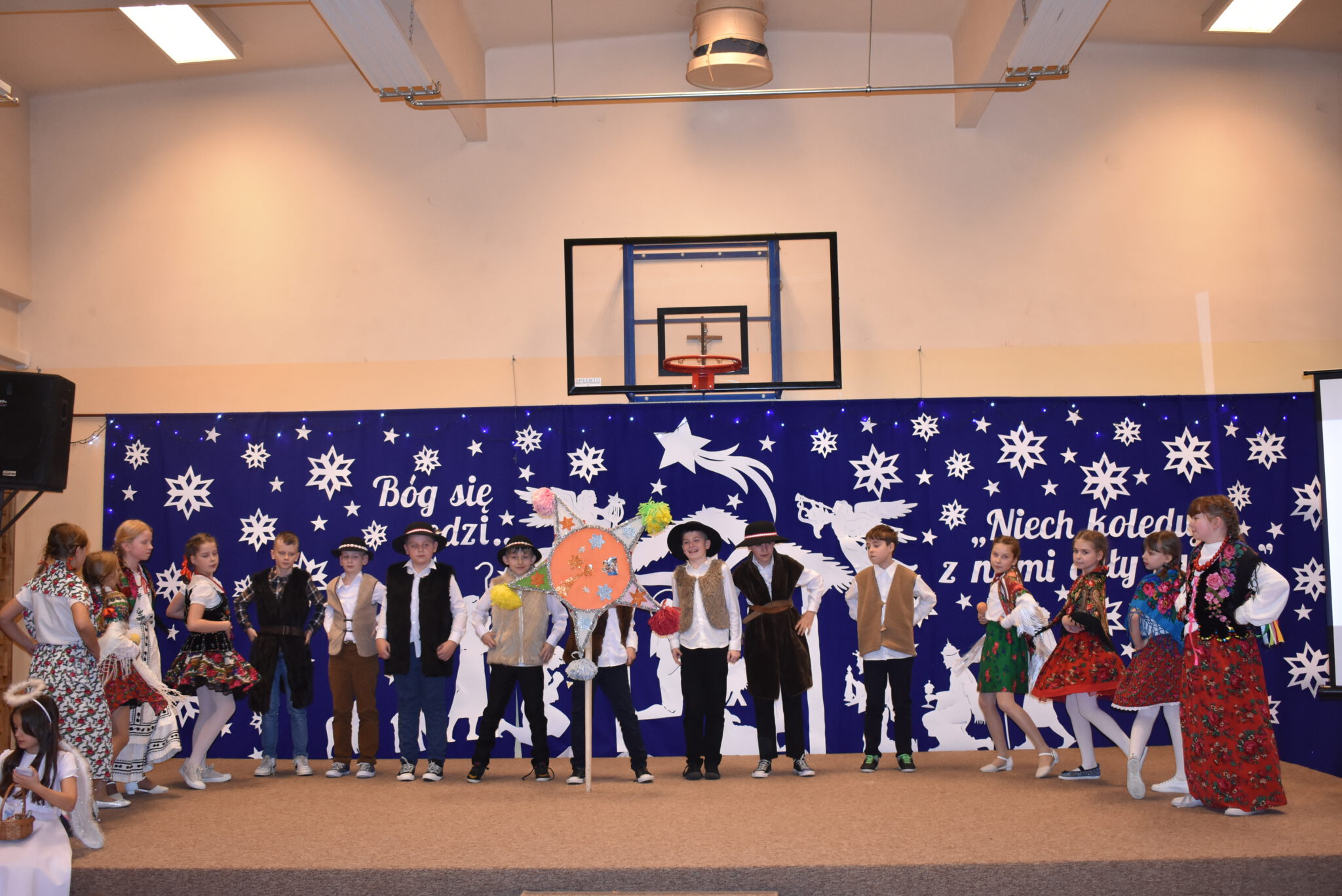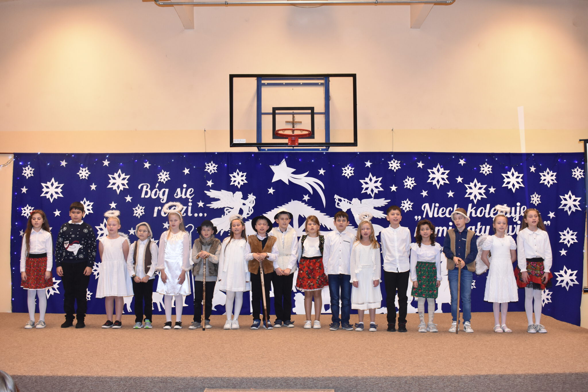 Wszyscy zachwycili nas wzruszającymi, pięknymi wykonaniami kolęd, cudownymi strojami i ciekawymi choreografiami. Każdy uczeń za wykonanie kolędy otrzymał obrazek zakupiony przez naszego księdza Proboszcza Jana Kardasia z kolędowym cytatem: