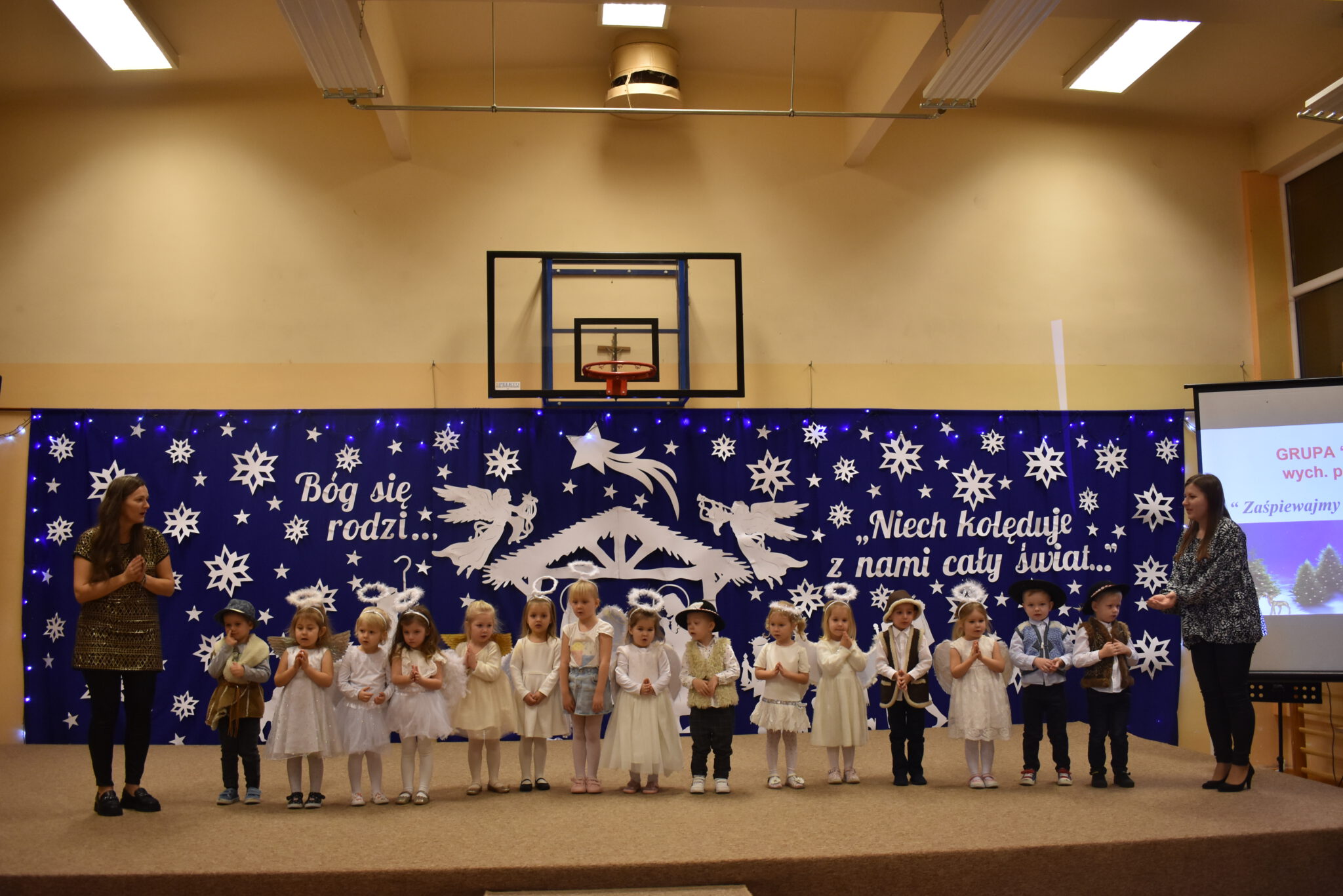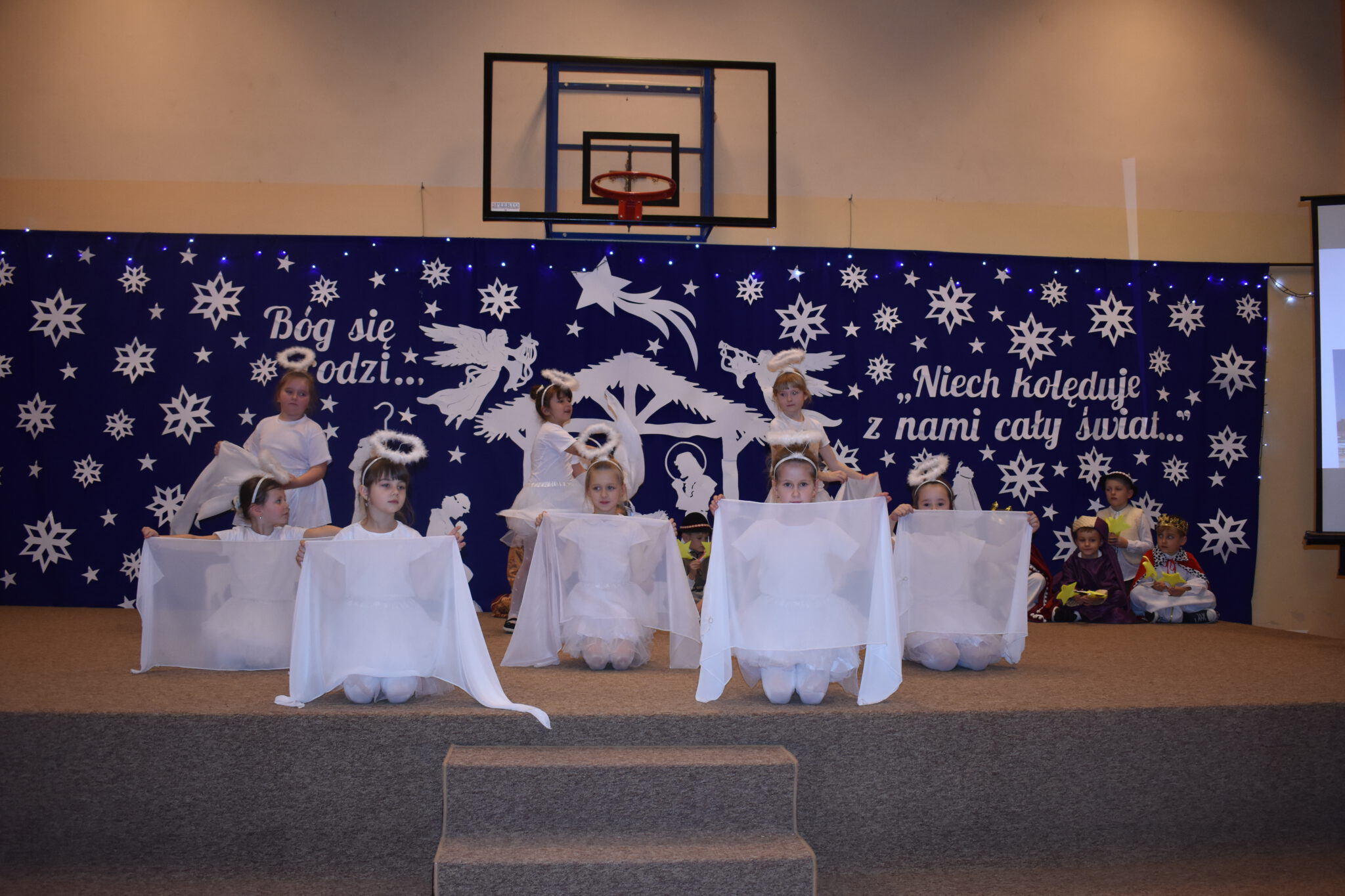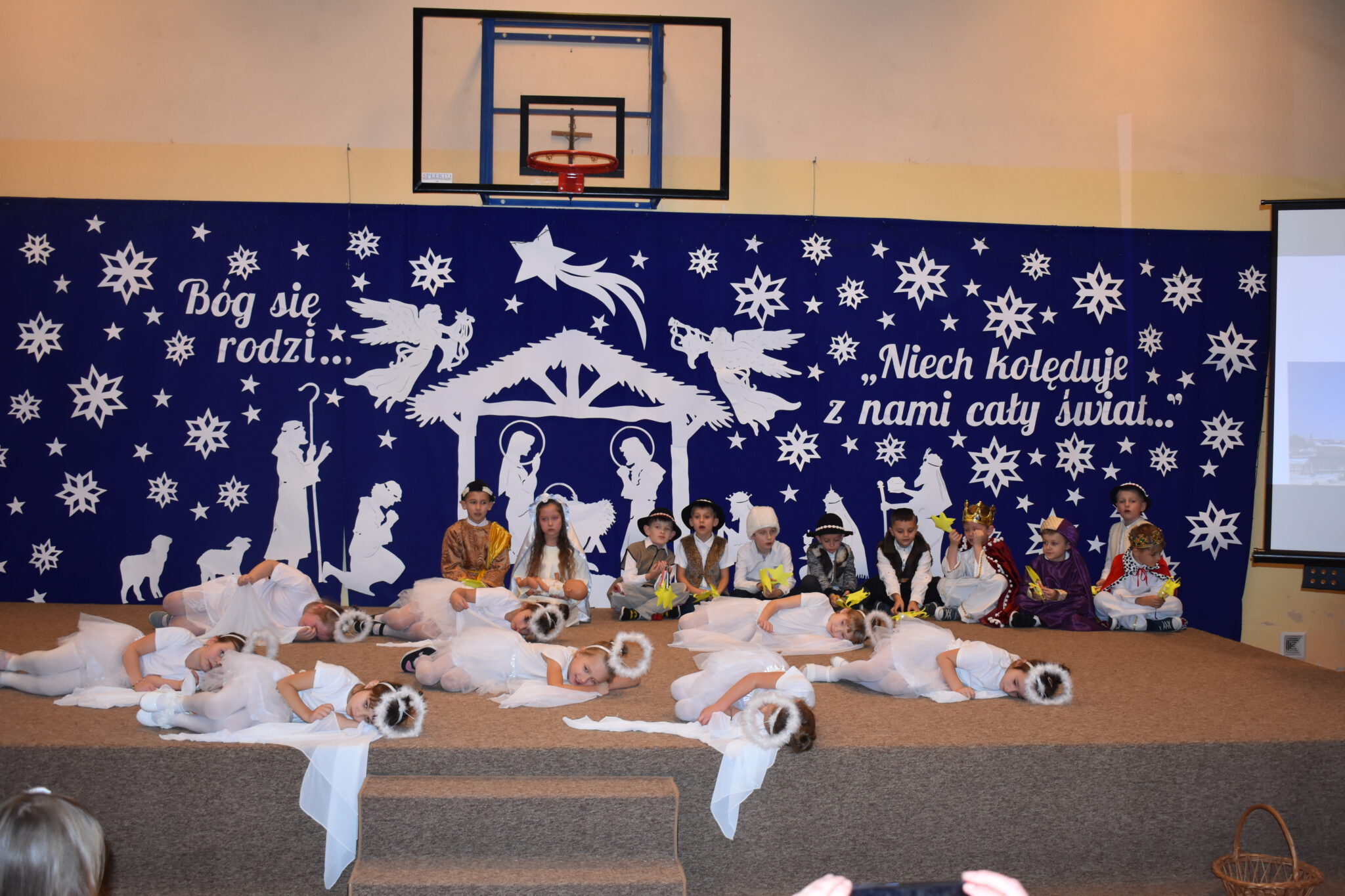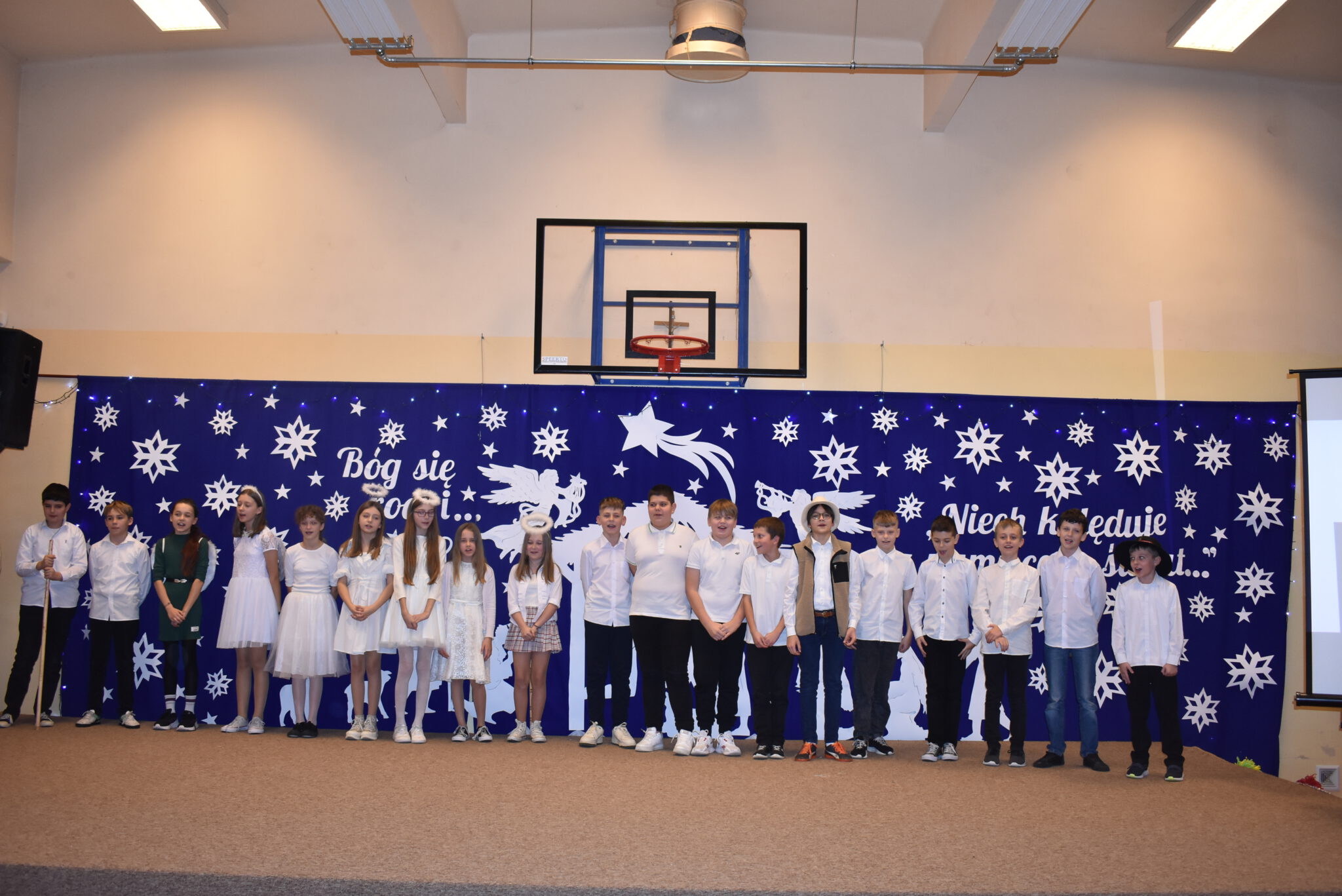 Wszyscy zachwycili nas wzruszającymi, pięknymi wykonaniami kolęd, cudownymi strojami i ciekawymi choreografiami. Każdy uczeń za wykonanie kolędy otrzymał obrazek zakupiony przez naszego księdza Proboszcza Jana Kardasia z kolędowym cytatem: