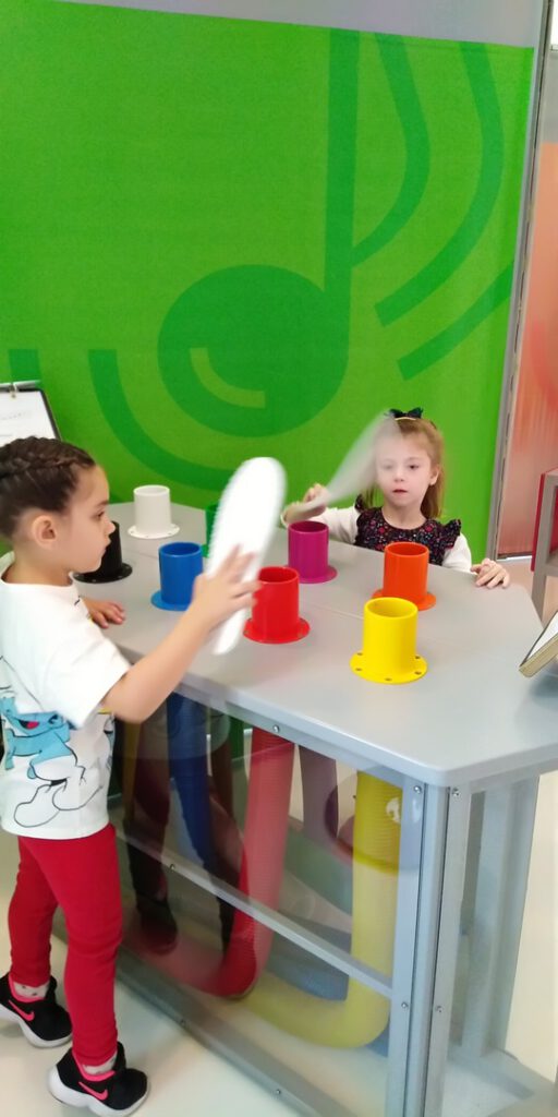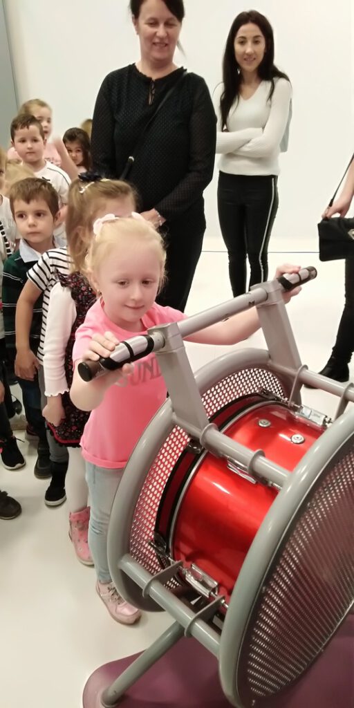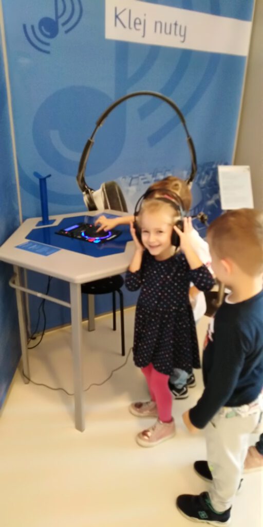 W ramach wyjazdu dzieci miały okazję zapoznać się z interaktywną wystawą pt. „Wmiksuj się!” poświęconą w całości dźwiękom. Dzieci uczestniczyły również w warsztatach muzyczno-plastycznych, podczas których miały okazję stworzyć własny telefon.