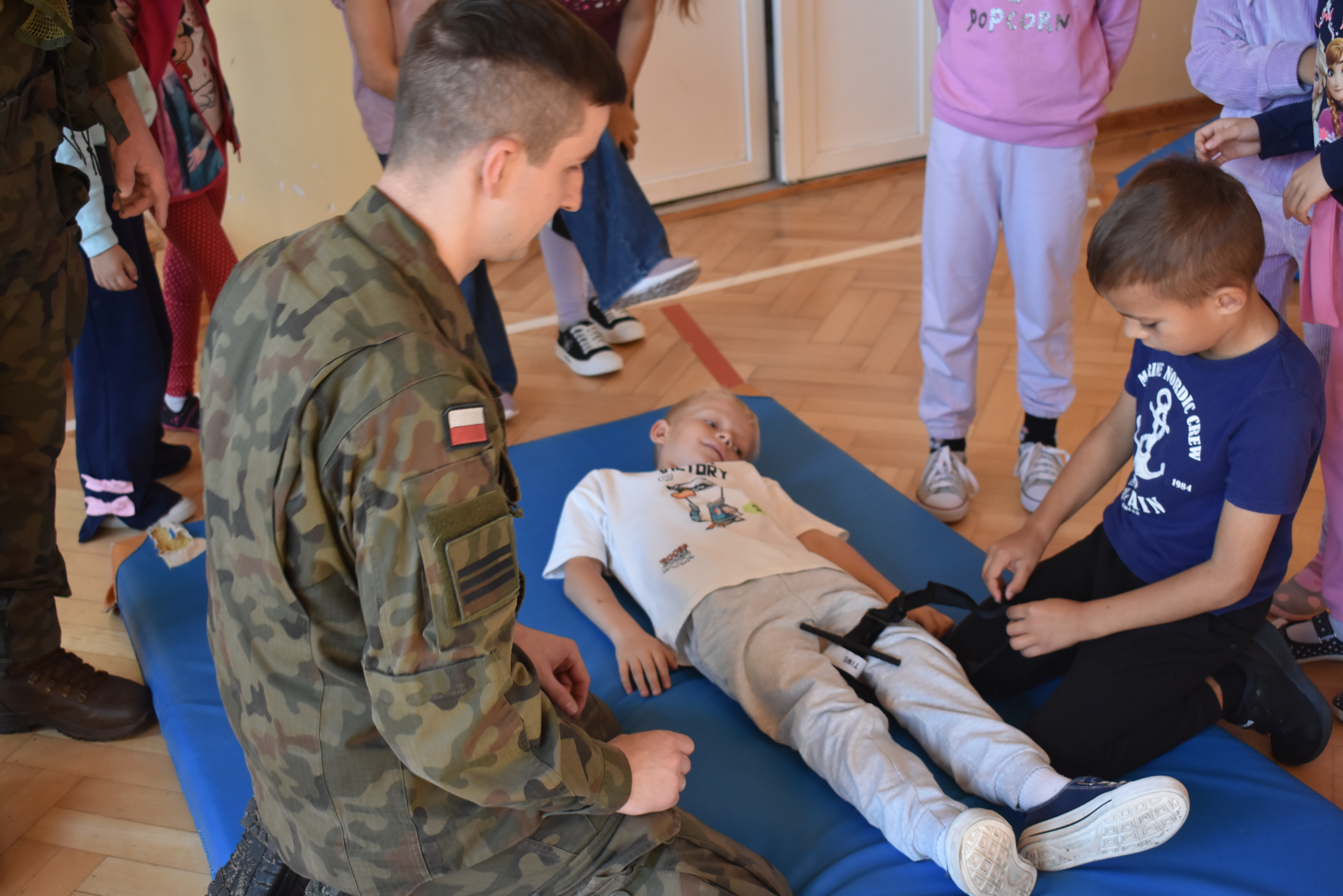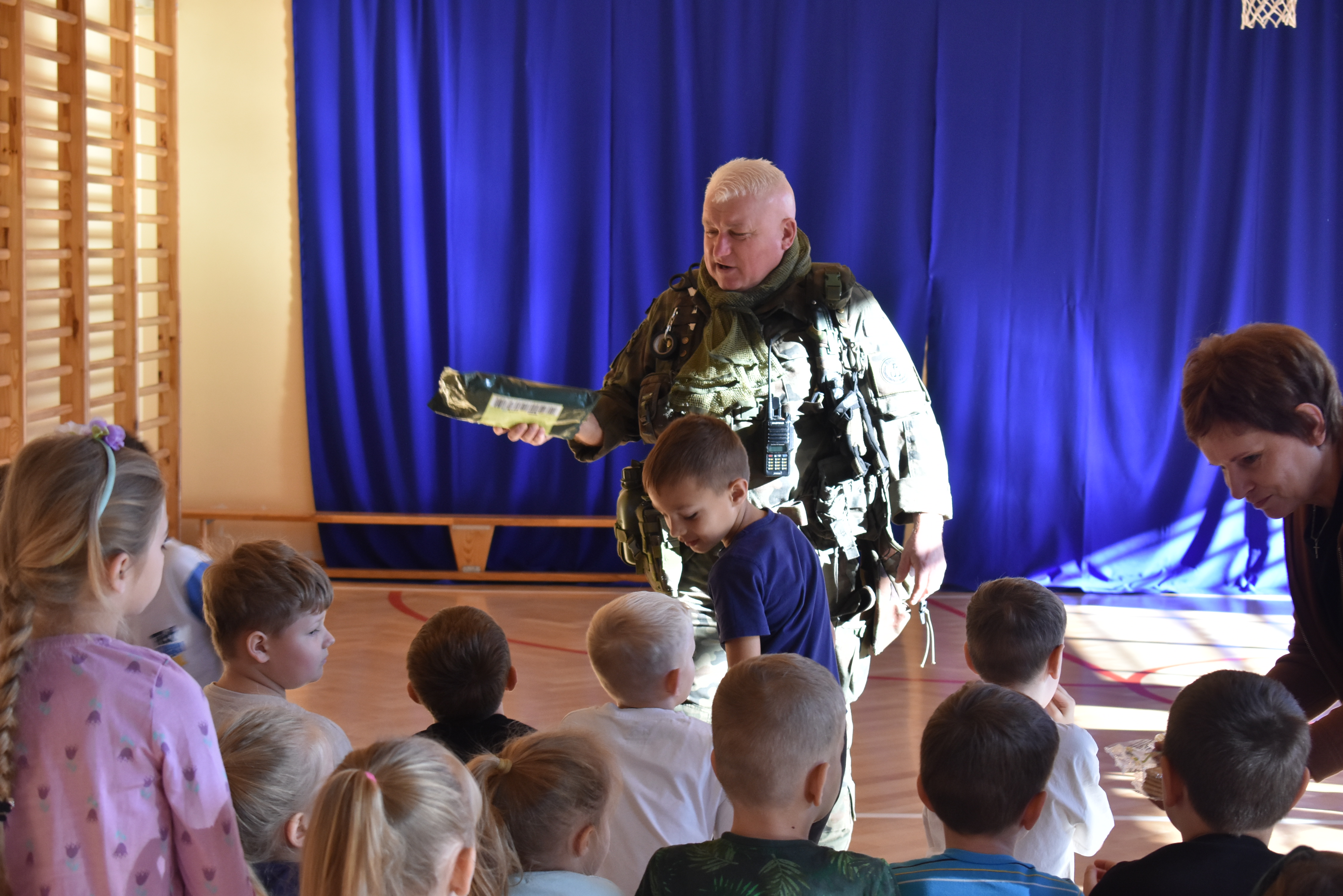 W dniach 25 i 26 września naszej szkole odbyły się zajęcia edukacyjne dla klas I-VIII z przedstawicielami służb mundurowych pt. "Edukacja z wojskiem". Żołnierze z Wojsk Obrony Terytorialnej przeprowadzili szkolenia dla naszych uczniów. Ich głównym celem było podniesienie świadomości dzieci i młodzieży w obszarze bezpieczeństwa i obronności oraz kształtowanie podstawowych nawyków, umiejętności z zakresu obrony i ochrony ludności oraz zachowania w sytuacjach kryzysowych.