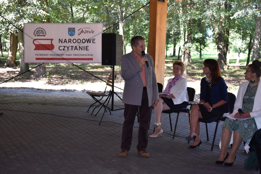 Tegoroczne Narodowe Czytanie zainaugurował dyrektor GCK w Jeżowem Pan Zbigniew Bednarz. Następnie Karolina Worach odczytała list prezydenta Andrzeja Dudy, który był wprowadzeniem do samej akcji i wybranego w tym roku utworu. Natomiast autorkę i jej dzieło przedstawił bardzo barwnie Pan Ryszard Mścisz.