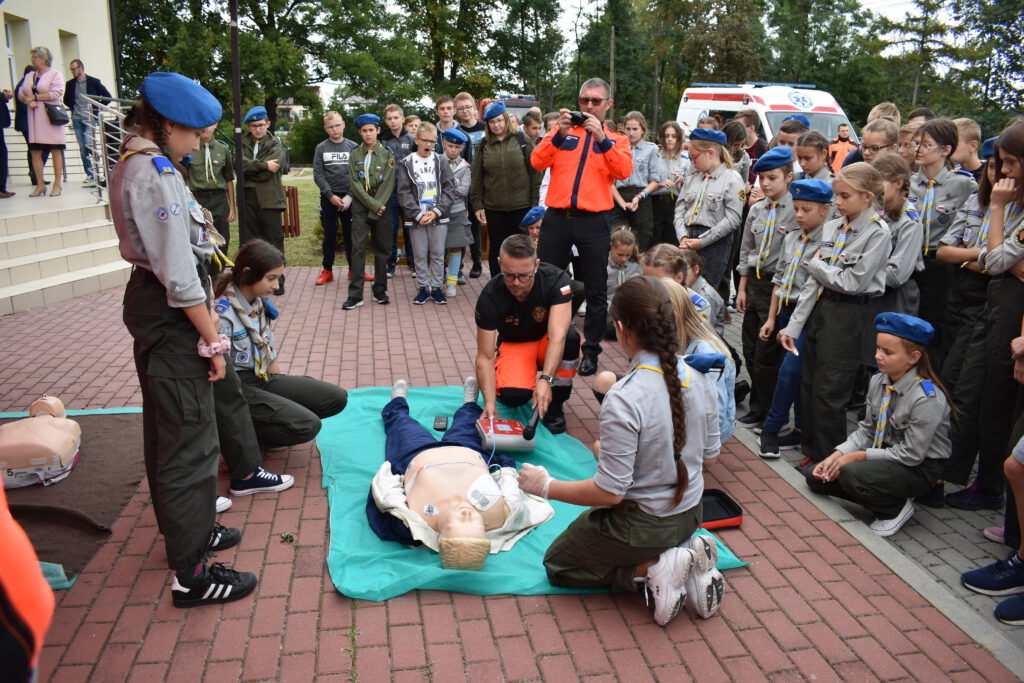 16 września 2019 r. miało miejsce oficjalne otwarcie stacji Pogotowia Ratunkowego w Jeżowem. Najstarsi uczniowie naszej szkoły oraz harcerze z 23 Wielopoziomowej Drużyny Harcerskiej „Watra” zostali zaproszeni na tę uroczystość, aby uczestniczyć w pokazie i szkoleniu z pierwszej pomocy. Harcerze mogli wykazać się wiedzą i umiejętnością udzielania pierwszej pomocy. Uczestnicy spotkania mieli również okazję zmierzyć swoje ciśnienie ora