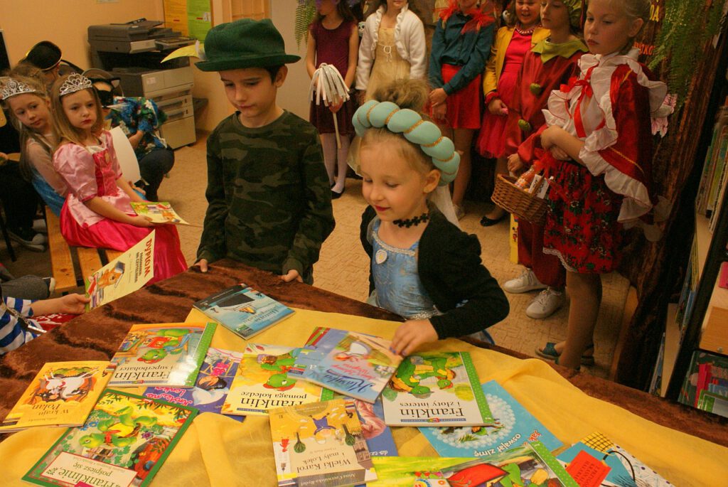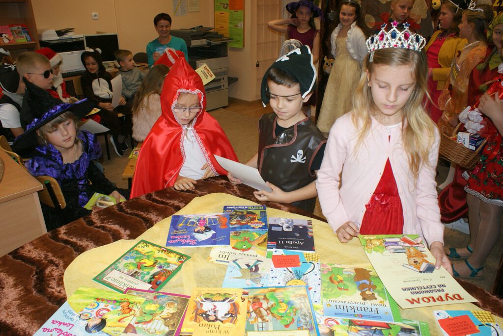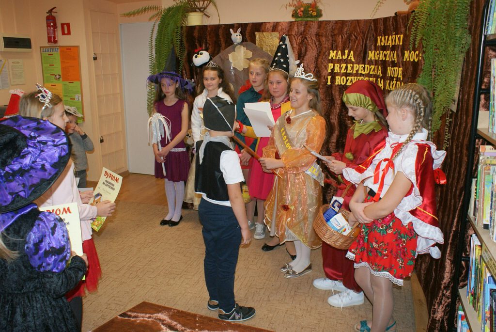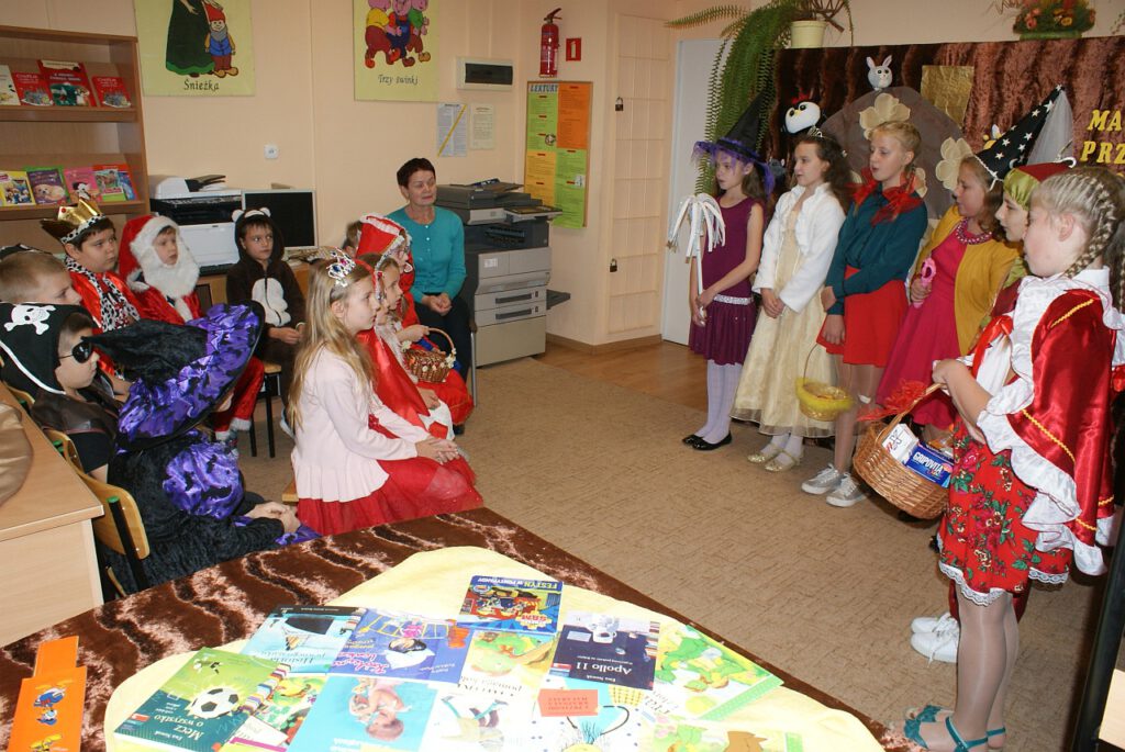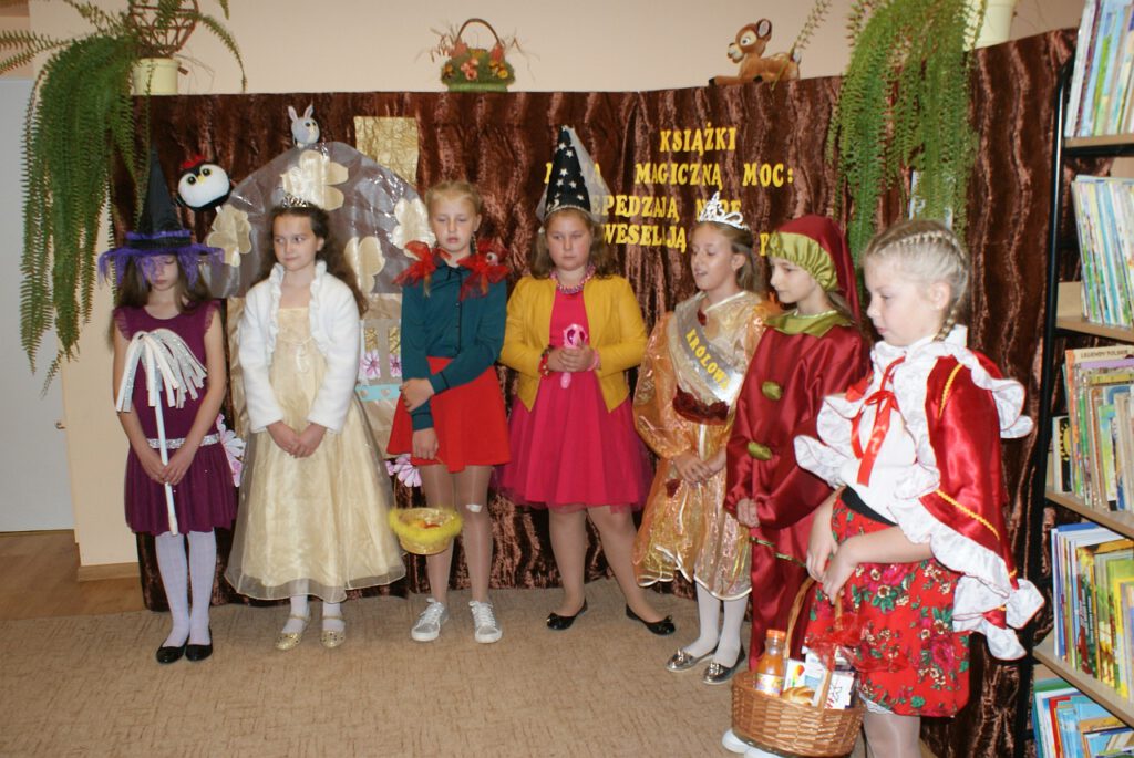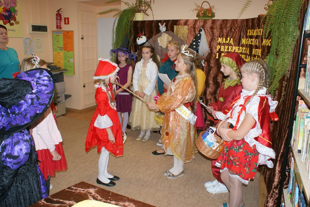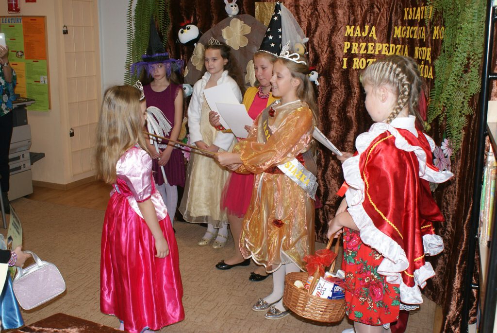 Uczennice z klasy V „a” wcieliły się w role „Królowej Książki”, „Wróżki”, „Kopciuszka”,„Czerwonego Kapturka”, „Krasnala”, „Baby Jagi” oraz „Małgosi” i wprowadziły przyszłych czytelników w magiczny świat książek.