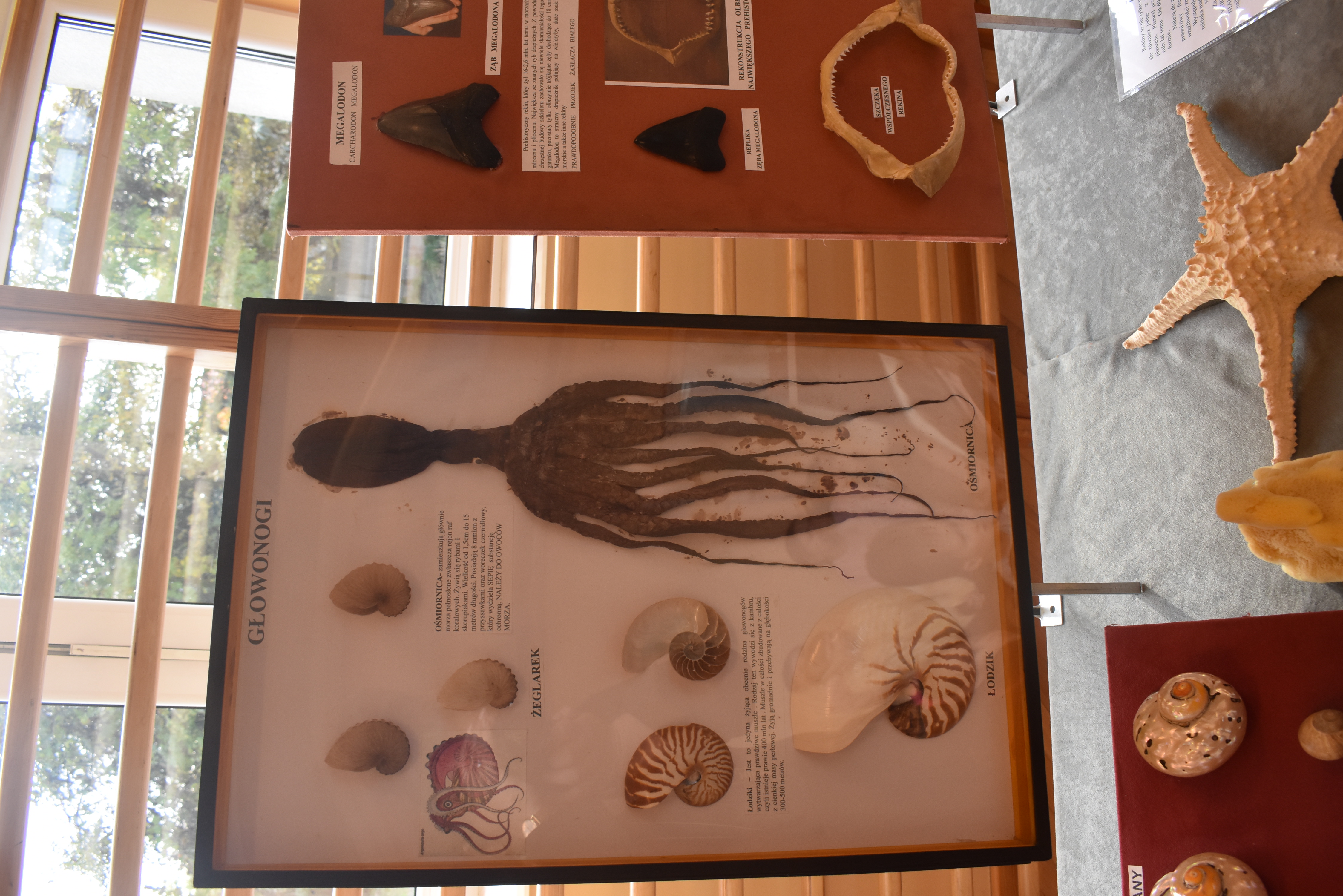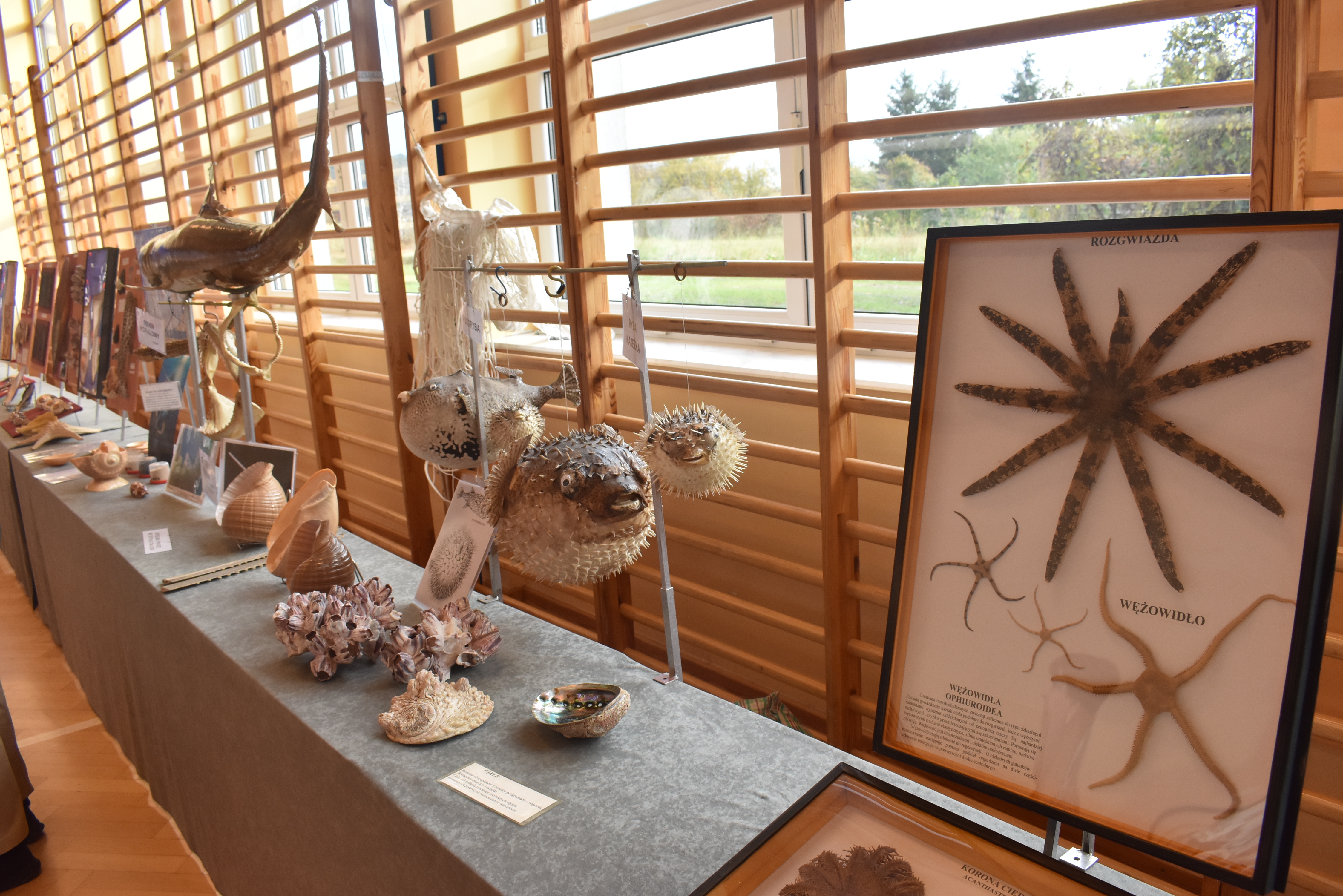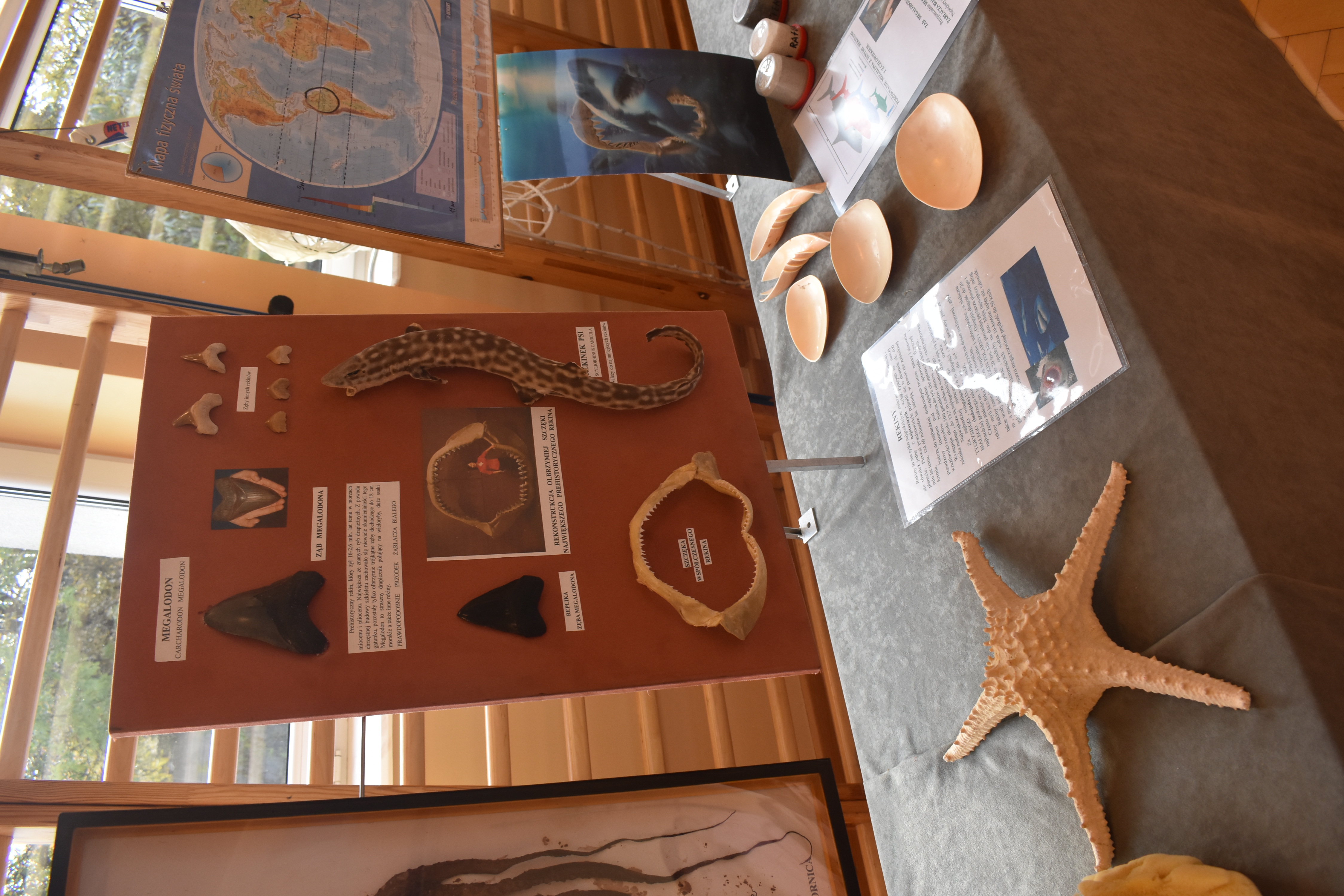 Podczas godzinnej prezentacji uczniowie mogli zobaczyć m. in.: ząb Megalodona (największej prehistorycznej ryby pływającej w oceanach), szczękę rekina ludojada, muszle małży, ślimaków, okazy rozgwiazd, gąbek, jeżowców, kolekcje pereł i perłopławów, kolekcje bursztynu i inne zbiory.