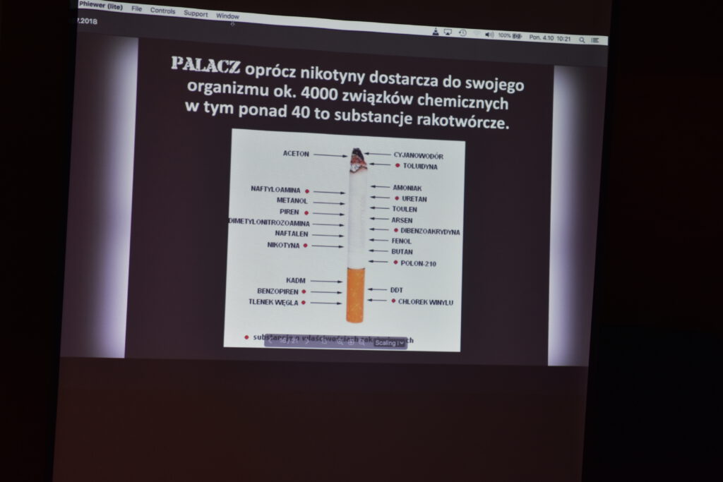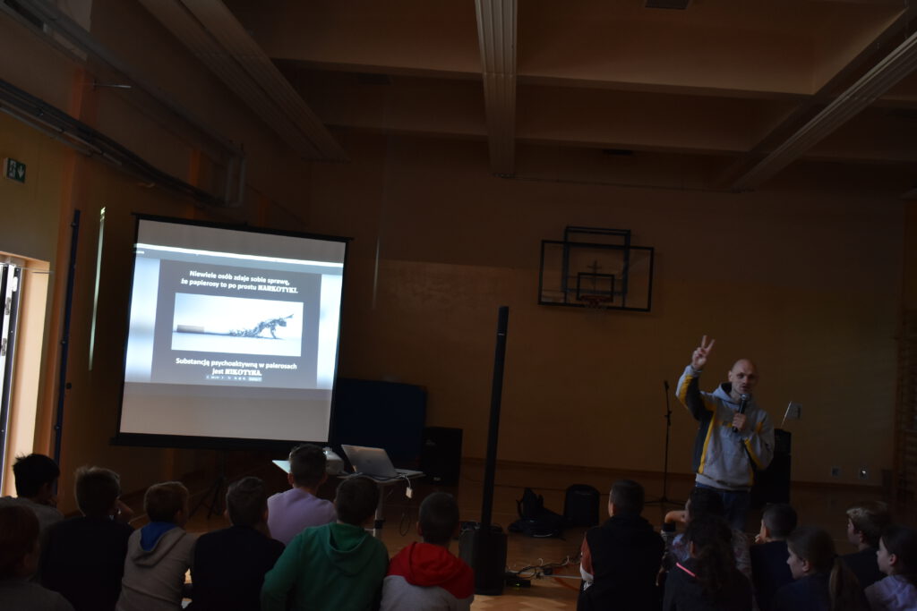 Pan Marcin uczestnikom spotkania przybliżył również wiedzę dotyczącą używek oraz skutków ich działania na organizm człowieka. Uświadomił im jak ważne są wartości w życiu człowieka i sposoby prowadzenia zdrowego stylu życia.