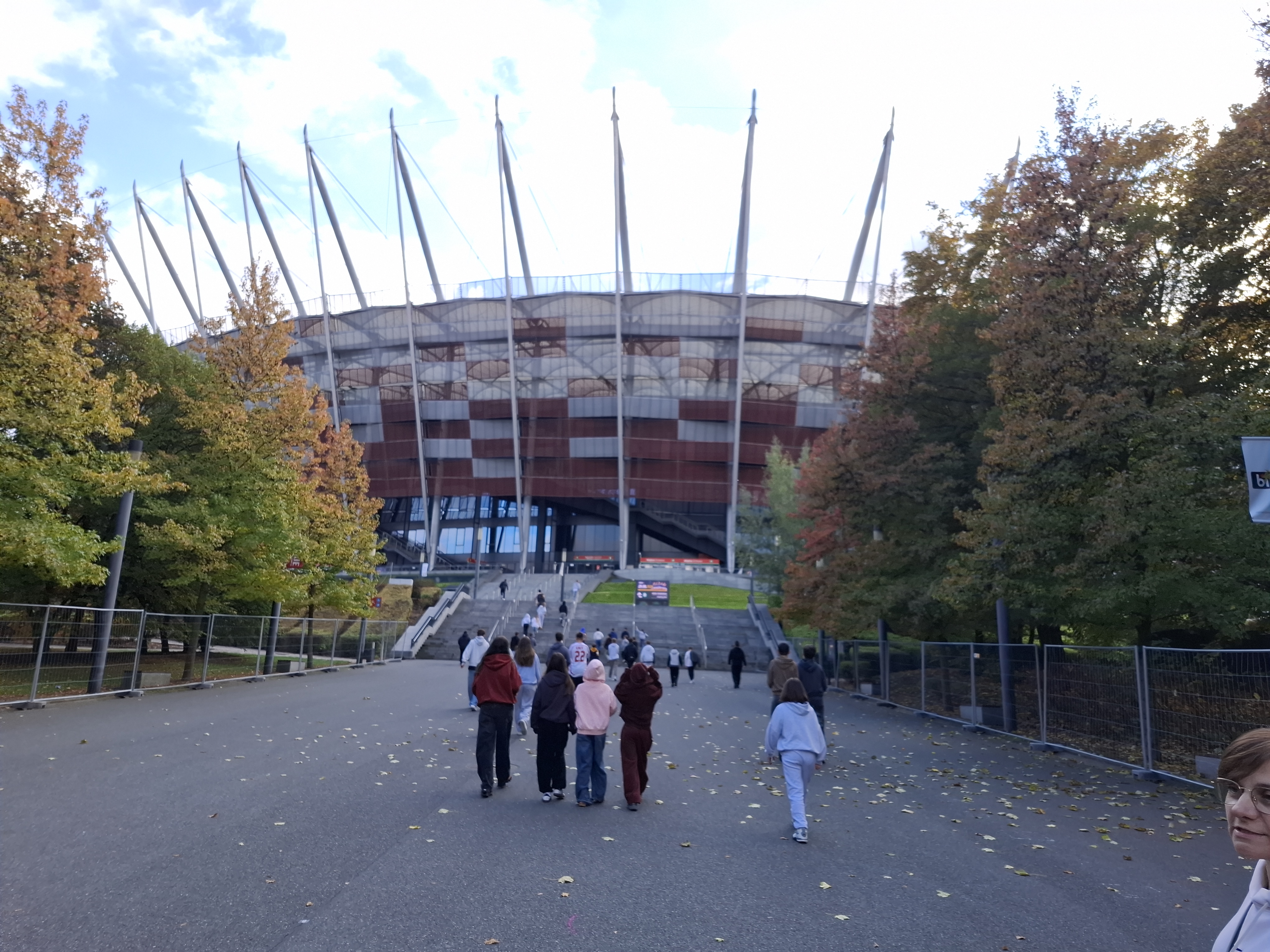 Kolejnym punktem był przejazd warszawski metrem na Stadion Narodowy. Przejścia „Trasą Piłkarza” w czasie której zobaczyliśmy szatnie, trybuny największej w Polsce areny rozgrywek sportowych. Podziwialiśmy również panoramę stolicy z XXX piętra tarasu widokowego Pałacu Kultury i Nauki.