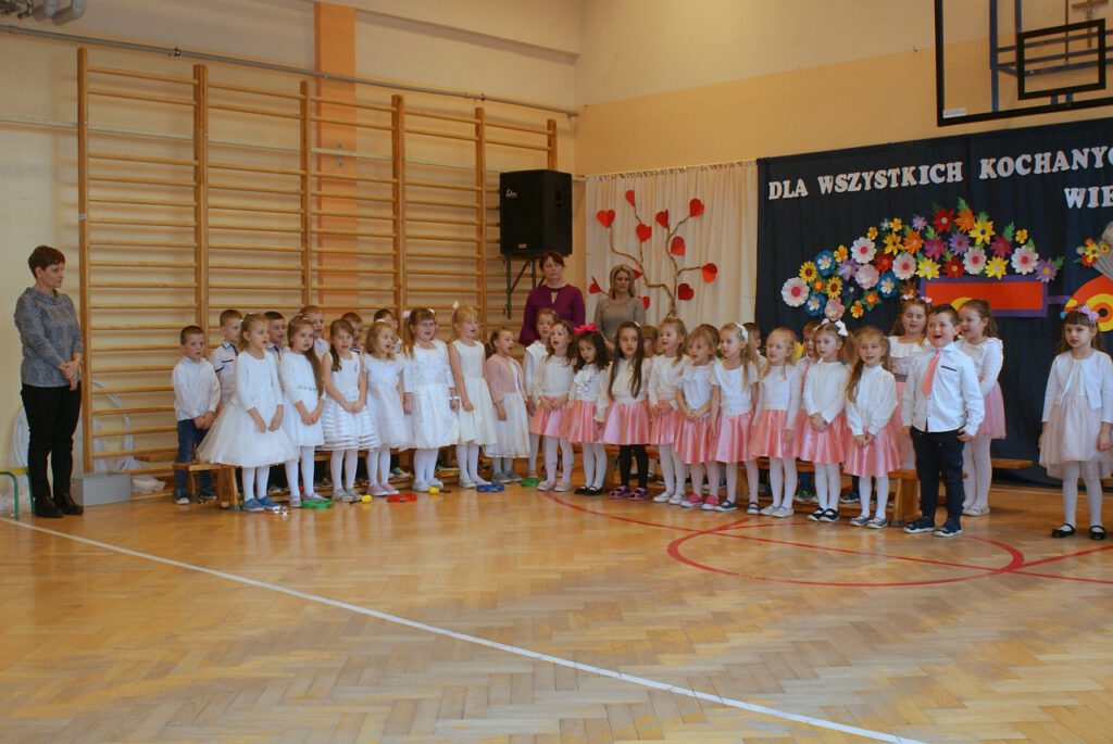 Dzieci z oddziałów przedszkolnych z grup 5-latków: Misie, Krasnoludki oraz grup 6-latków : 0a, 0b pod okiem swoich wychowawców sumiennie przygotowali się do tego dnia. Dały popis swoich zdolności: recytatorskich, tanecznych, wokalnych.